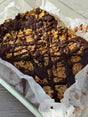 Was ich an diesen Riegeln besonders liebe: Sie sind perfekt fürs Meal Prep! Du kannst sie bis zu 10 Tage im Kühlschrank aufbewahren oder sogar einfrieren. Sie sind der ideale Snack vor oder nach dem Training (Kohlenhydrate für Energie + Protein für die Muskeln!), für die Lunchbox, oder einfach wenn du unterwegs was Gesundes brauchst.