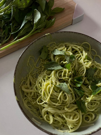 Food is medicine – und das meine ich wirklich so! Eine der besten Entscheidungen für meine Gesundheit war, selbst zu kochen, anstatt fertiges Essen zu kaufen. Diese Avocado-Basilikum-Pasta ist der perfekte Beweis dafür: easy peasy, mega lecker und voller guter Zutaten.