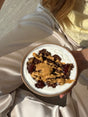 Nutritionell gesehen ist dieses Frühstück auch richtig gut: Der Joghurt liefert Protein und Probiotika für eine gesunde Darmflora. Die Banane bringt Kalium, Ballaststoffe und natürliche Süße mit. Datteln stecken voller Ballaststoffe, Kalium und Magnesium. Die Erdnussbutter gibt zusätzliches Protein und gesunde Fette, die dich lange satt halten. Und das Ghee? Das liefert fettlösliche Vitamine A, D, E und K.