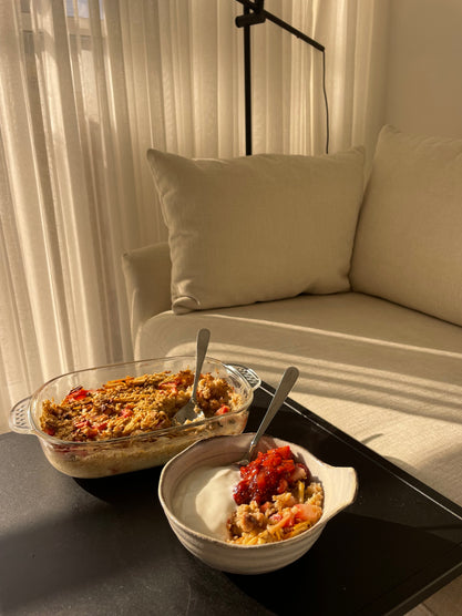 Seien wir ehrlich: Morgens ist absolute Rush Hour. 🫠 Aber ein warmes, sättigendes Frühstück muss trotzdem keine halbe Stunde dauern. Dieser Frühstück Crumble geht in den Ofen, während du dich fertig machst – und liefert dir 15g Protein und 15g Ballaststoffe für einen energiegeladenen Start in den Tag.