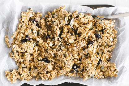 Normalerweise bereite ich das gepuffte Amaranth Granola schon am Wochenende vor. Somit steht es bereit für die ganze Woche und nimmt mir jede Menge Stress am Morgen ab. Ich esse das Granola entweder mit Mandelmilch oder Kokosjoghurt mit frischen saisonalen Früchten oder als Topping für meine Smoothie Bowl.