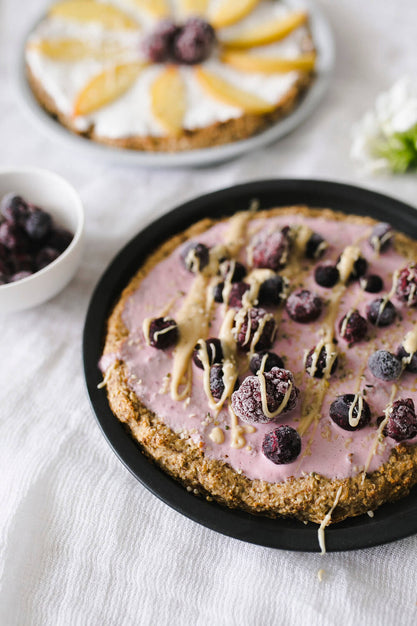 Das beste an dieser Frühstücks Pizza ist dass du so viele Optionen für den Belag hast, du kannst deiner Kreativität freien Lauf lassen. Ich habe zwei Optionen die ich am liebsten verwende. Einmal Kokos Joghurt und Beeren im Mixer vermengt und mit geschälten Hanfsamen, Beeren und Mandelmus dekoriert. Die zweite Option ist Kokos Joghurt Pur mit frischen Früchten belegt, Honig, Saaten und geraspelter Kokosnuss. Die Optionen sind jedoch endlos! Ich würde mich so freuen eure Kreationen zu sehen also Tag mich in deinem Foto und verwende #nathaliescusine!