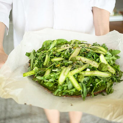 Kannst du nur beim Anblick der Fotos erraten aus was der Pizzaboden gemacht ist? Ich gebe dir ein Tipp die Zutat ist nicht grün…