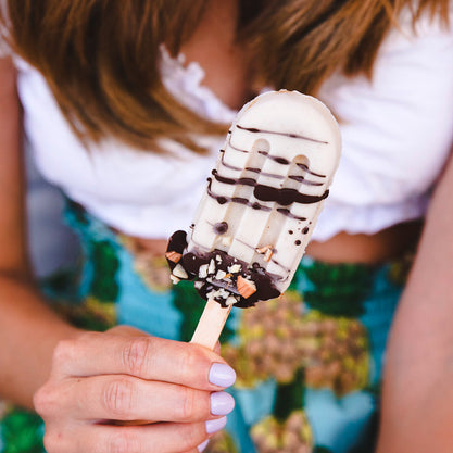 - Die Schokolade schmelzen und die Nüsse hacken und vor dem Servieren auf den Popsicles verteilen.