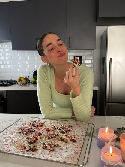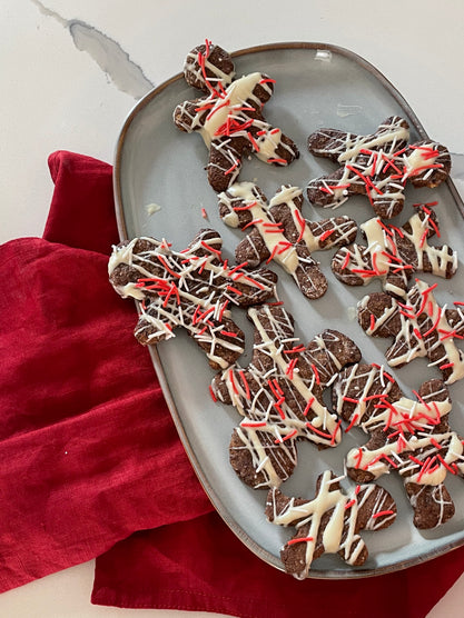 Der Kakao bringt eine schokoladige Tiefe und liefert Antioxidantien. Zusammen mit der weißen Schokolade zum Dekorieren entstehen so kleine Kunstwerke, die auf keinem Plätzchenteller fehlen dürfen – und die du ohne schlechtes Gewissen genießen kannst. 🎅