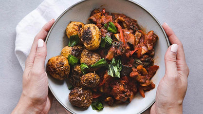 Statt Aubergine einfach mehr Zucchini und Paprika verwenden und statt Tomaten kannst du meine super leckere Paprika Sauce machen.
