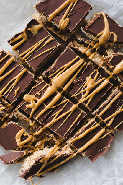 - Die restliche Schokolade mit 1TL Kokosöl im Wasserbad schmelzen und auf den Teig verteilen.